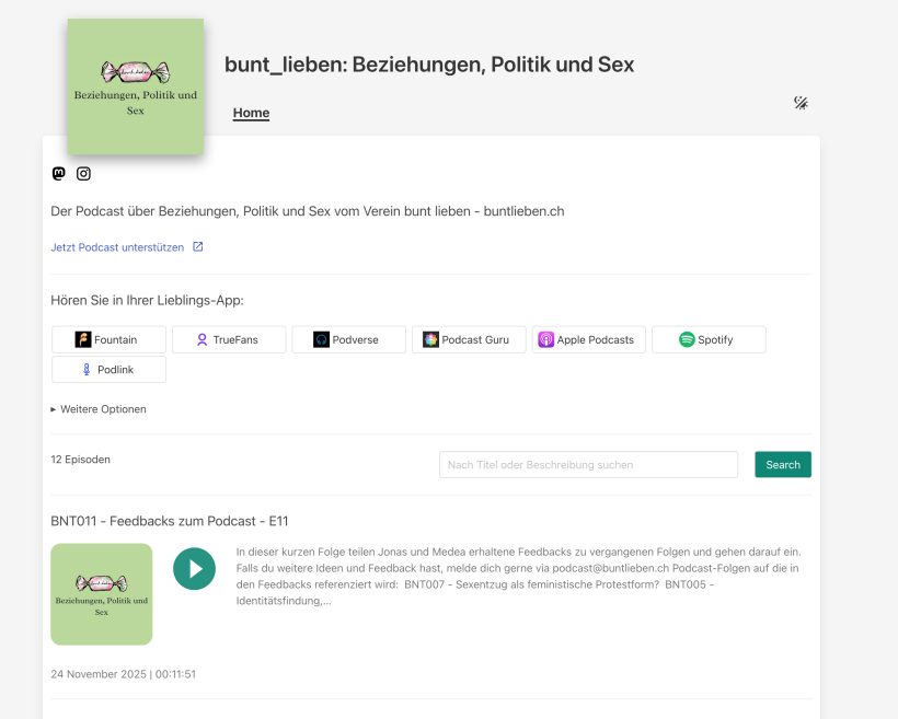 Für den Verein bunt_lieben übernehme ich die Produktionsleitung sowie den technischen Aufbau und die Aufnahme des vereinseigenen Podcasts bis hin zur Distribution. Zusammen mit einem kleinen Kernteam entwickeln wir das Format stetig weiter.